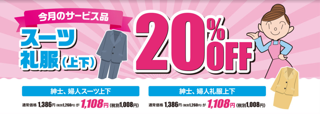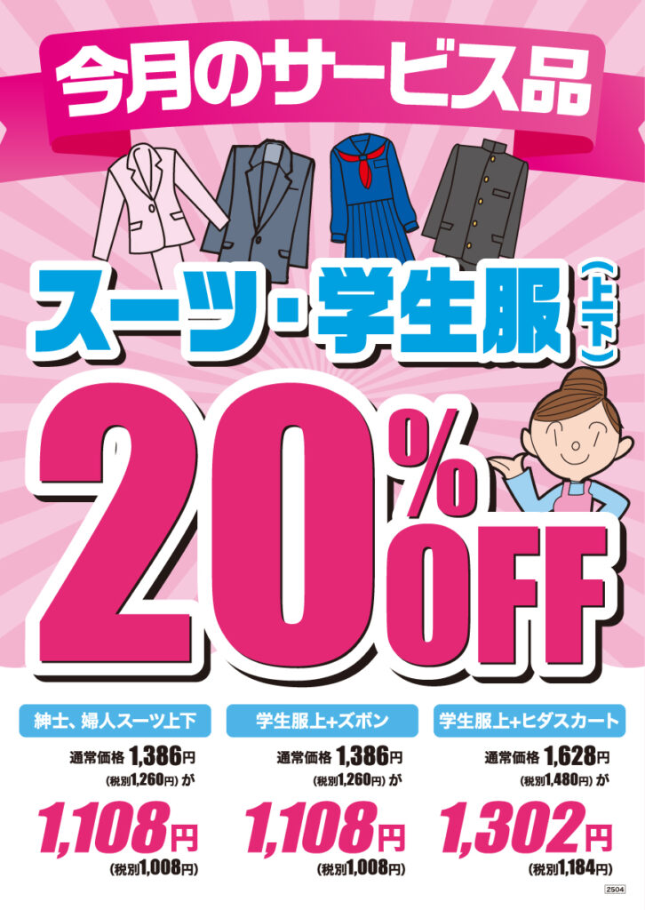 🎄12月のサービス品|スーツ・学生服上下 20%OFF!冬休みにスッキリきれいに